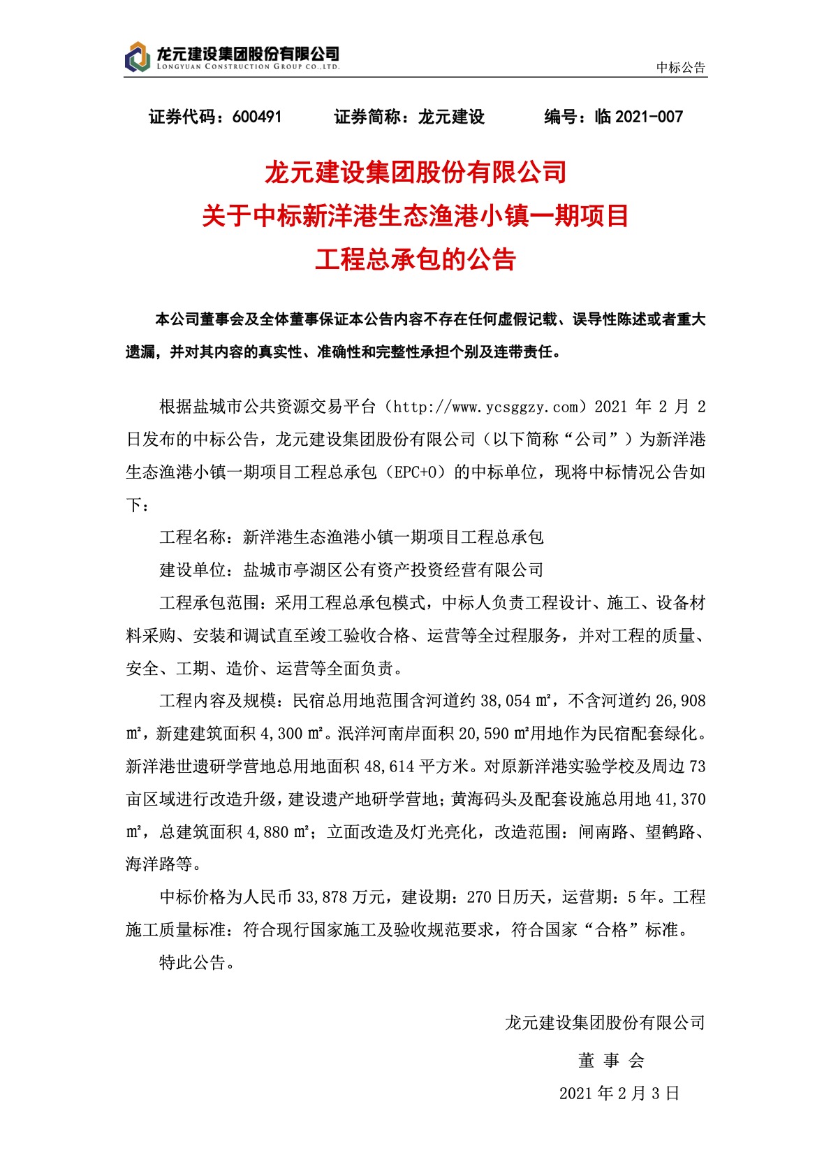 2021年2月3日,龍元建設集團股份有限公司聯(lián)合蘇州無舍文化傳播有限公司、北京大地鄉(xiāng)居旅游發(fā)展有限公司中標——新洋港生態(tài)漁港小鎮(zhèn)一期項目工程總承包EPC+O項目。該項目是龍元集團首個EPC+O項目,是龍元明城協(xié)同集團各部門、龍元明興、龍元設計浙江分公司、江蘇分公司等龍元生態(tài)單位,以及外部優(yōu)秀設計、施工、運營單位協(xié)同努力的成果。這也是對龍元集團在基建領域不斷嘗試新業(yè)務、新模式的肯定。